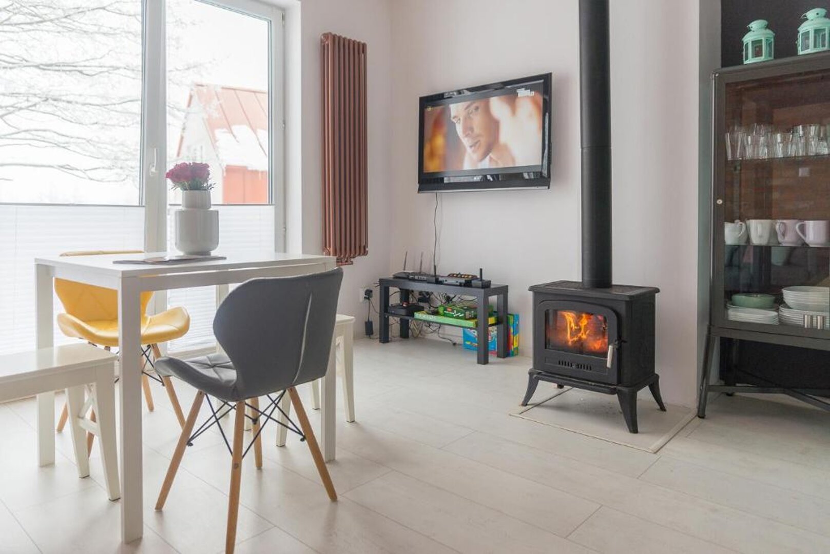 Każdy z nich wyposażony jest w przestronny salon z kominkiem, aneks kuchenny dostosowany do wszelkich potrzeb, wygodne łazienki oraz dwie sypialnie na piętrze, a także wszystkie media. Oferujemy również miejsce do wspólnego biesiadowania przy grillu i schowek na sprzęt sportowy.